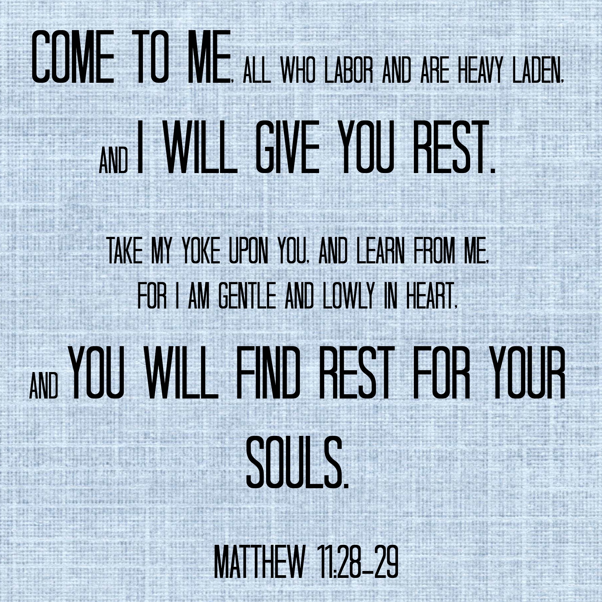 To say that this past week was heavy laden is an understatement. Do you ever have those times when you’re just being hit on all sides, and you can’t even look up for being hit again? That was my week. Over and over again I prayed this verse back to God. Actually, I mainly just prayed the first three words, “Come to me.”