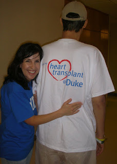 The picture above is right before we left the hospital yesterday! Yes, I am wearing a Duke t-shirt! When they give your husband a heart, you can’t help but be a fan – of the hospital that is!